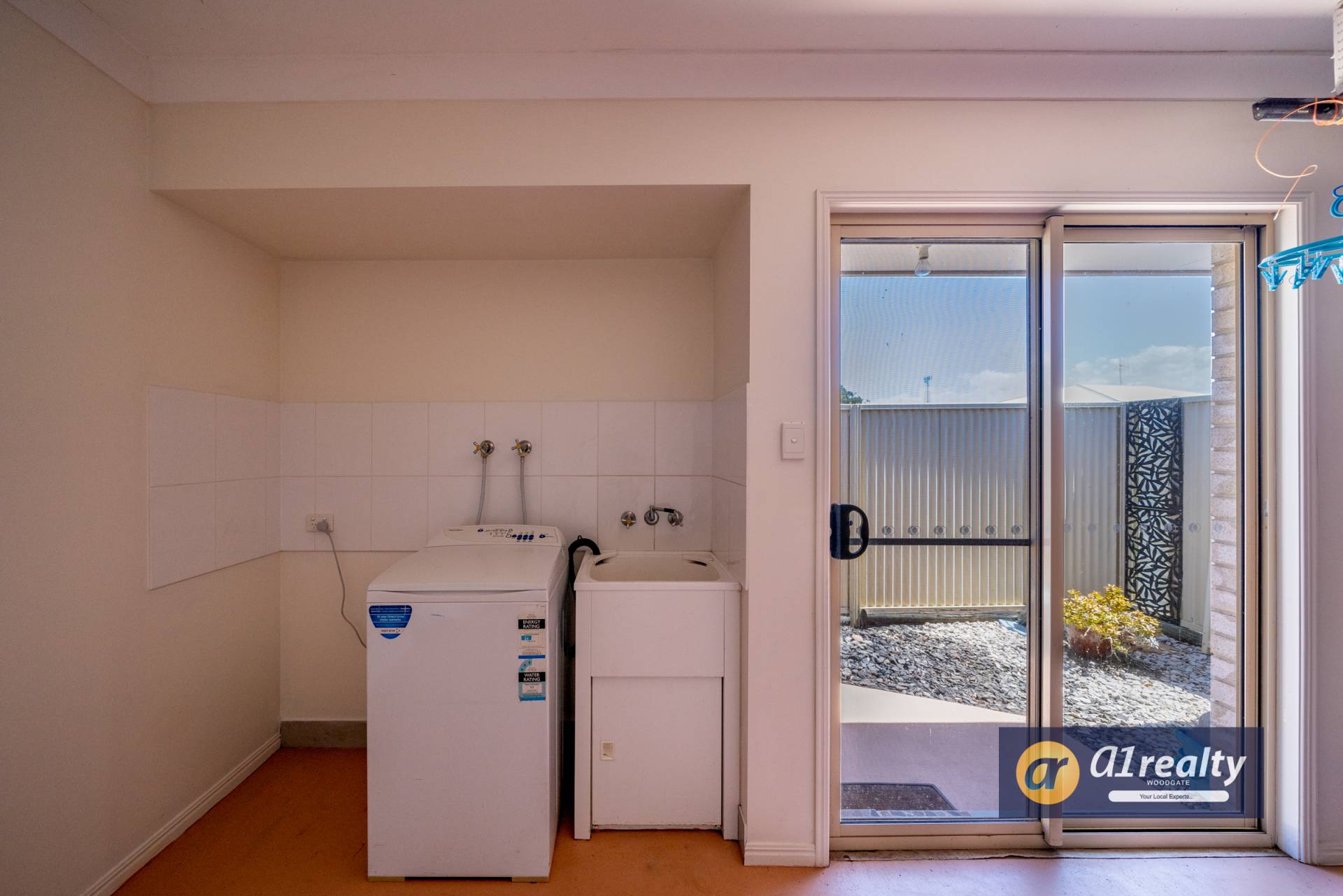 - Double garage with roomy laundry area accessing outside via glass sliding doors.