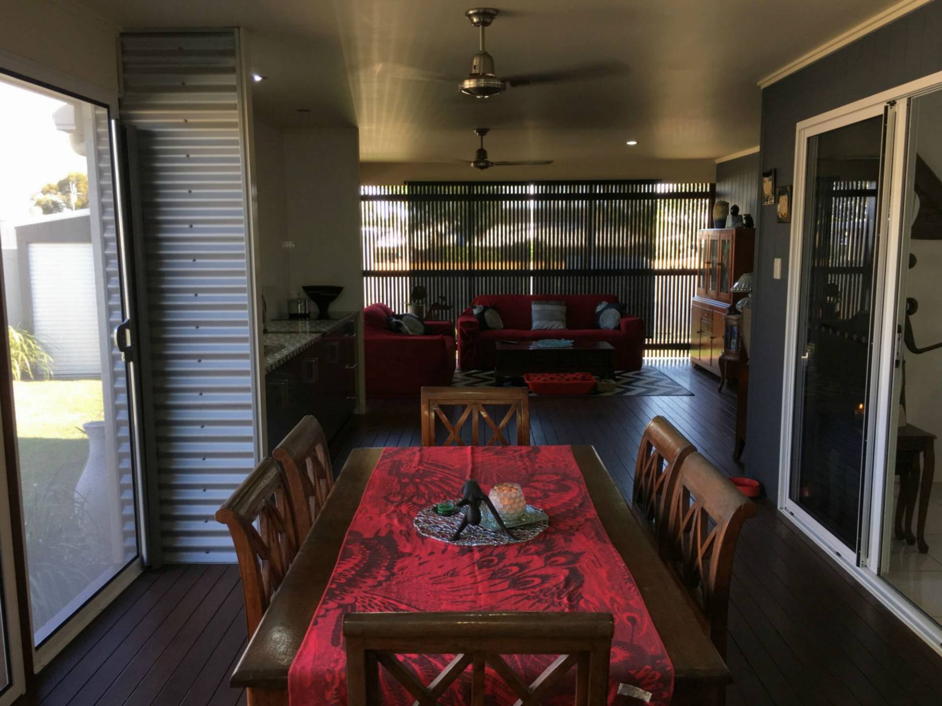 dining area - secured with decorative timberwork and steel mesh screening