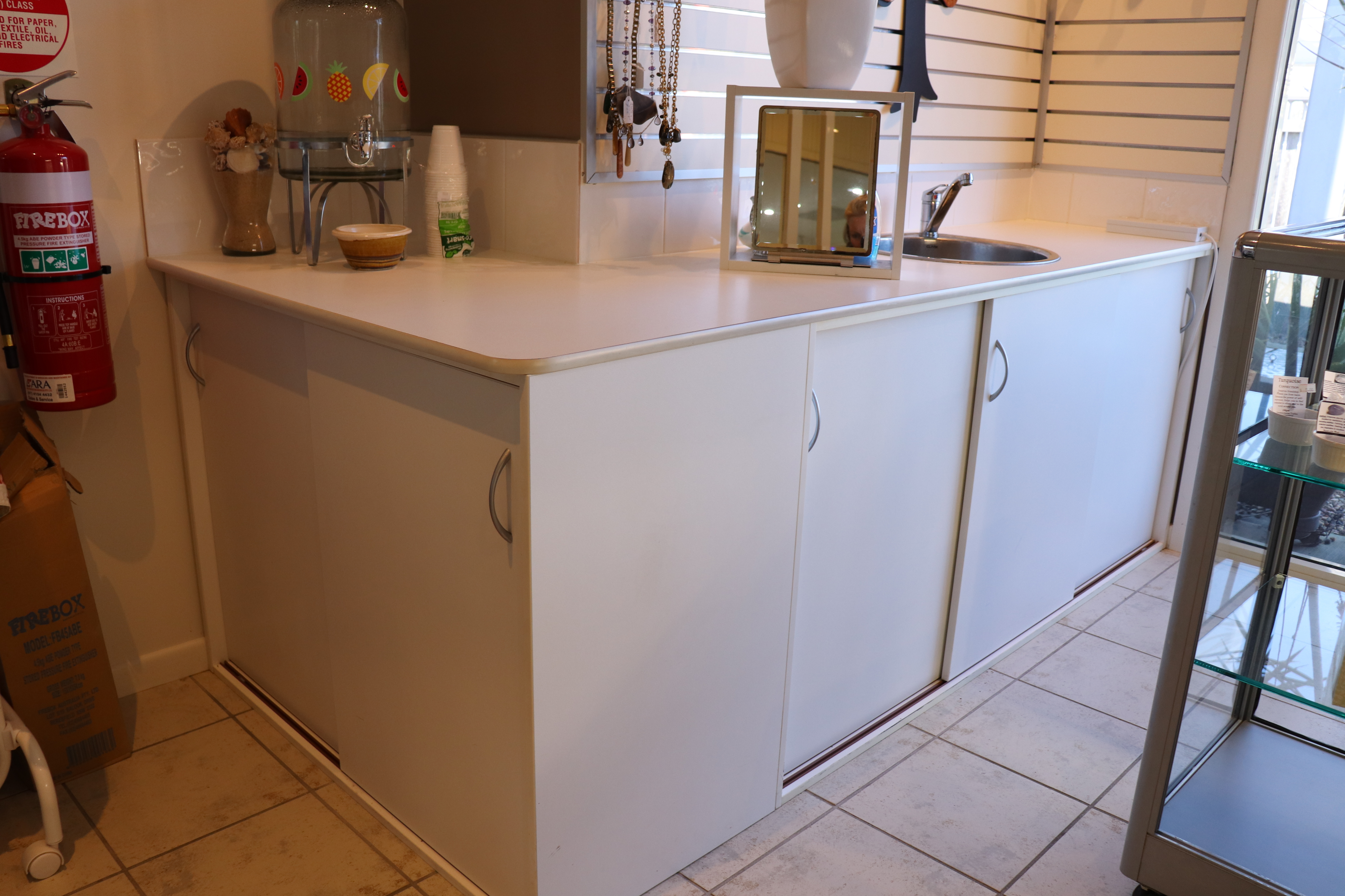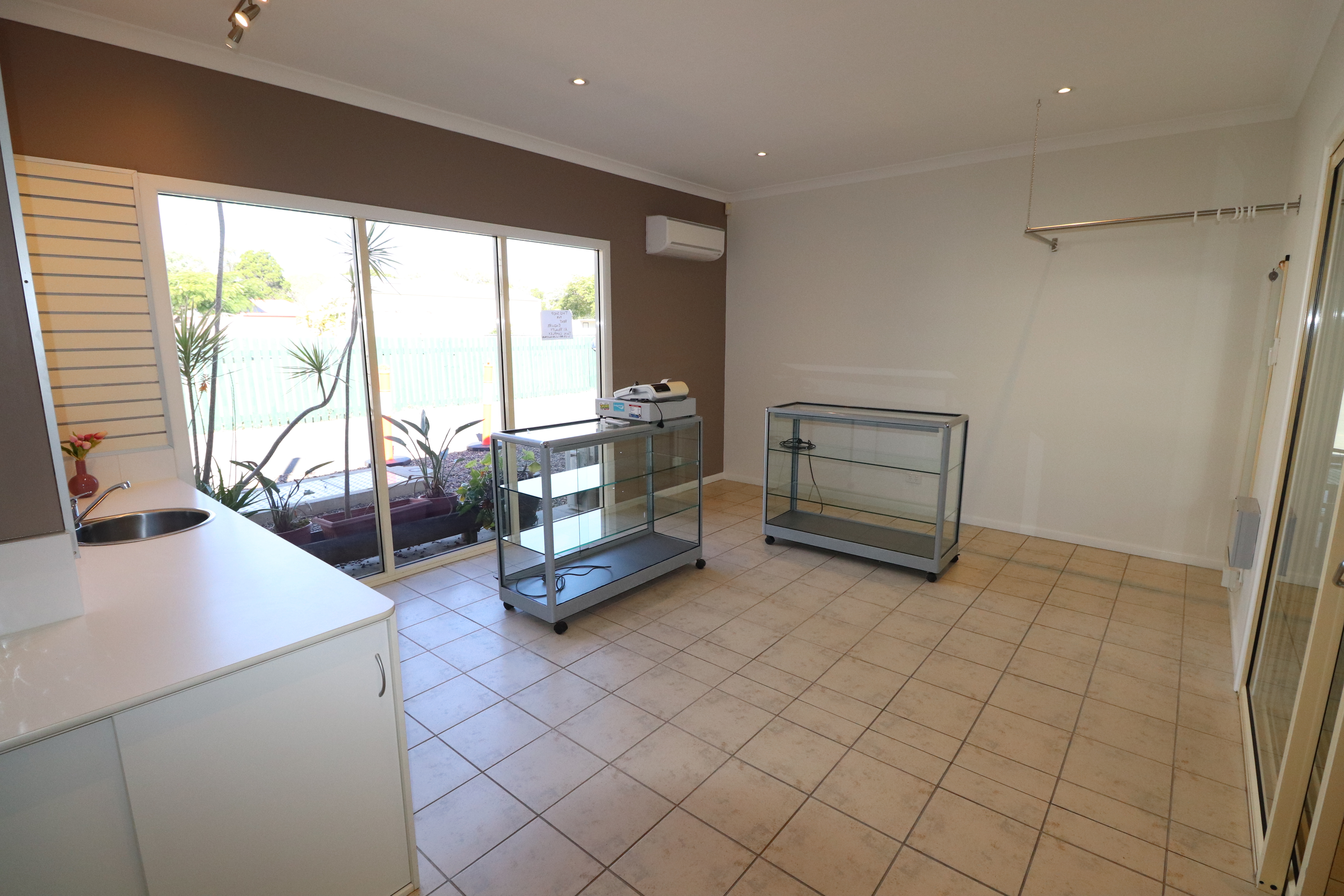 The space has built in cabinetry, hot and cold running water, reverse cycle air conditioning, 2 moveable glass cabinets, built in change room and restrooms on site.