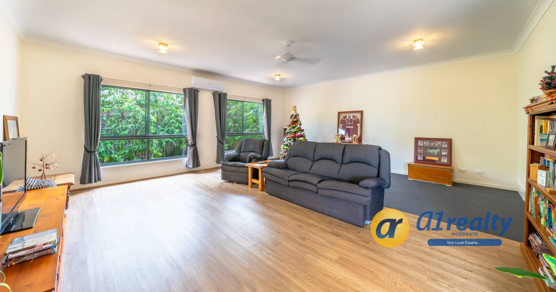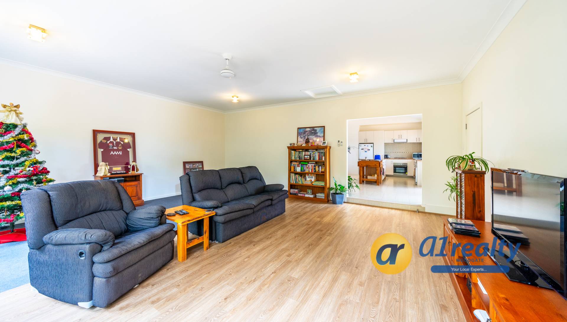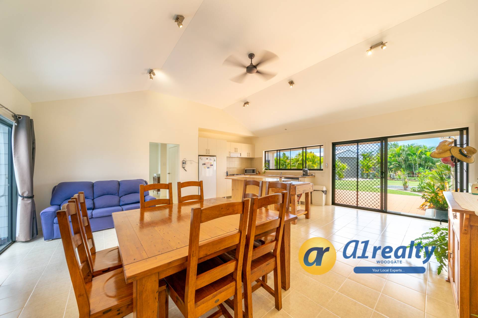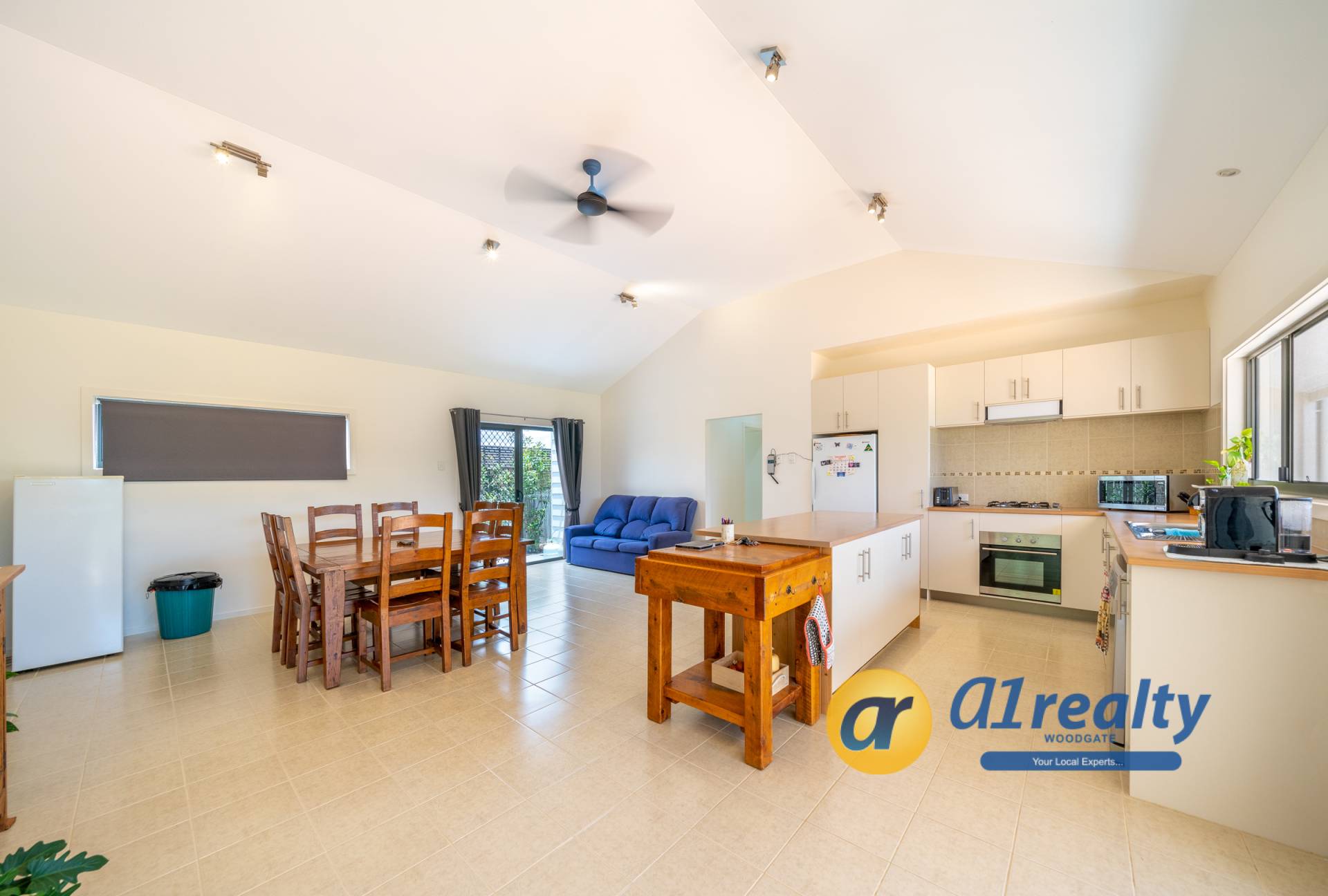 • Open plan kitchen, dining, sitting and entry area with 3.6m raked ceilings, 7.5kw air-con and fans.