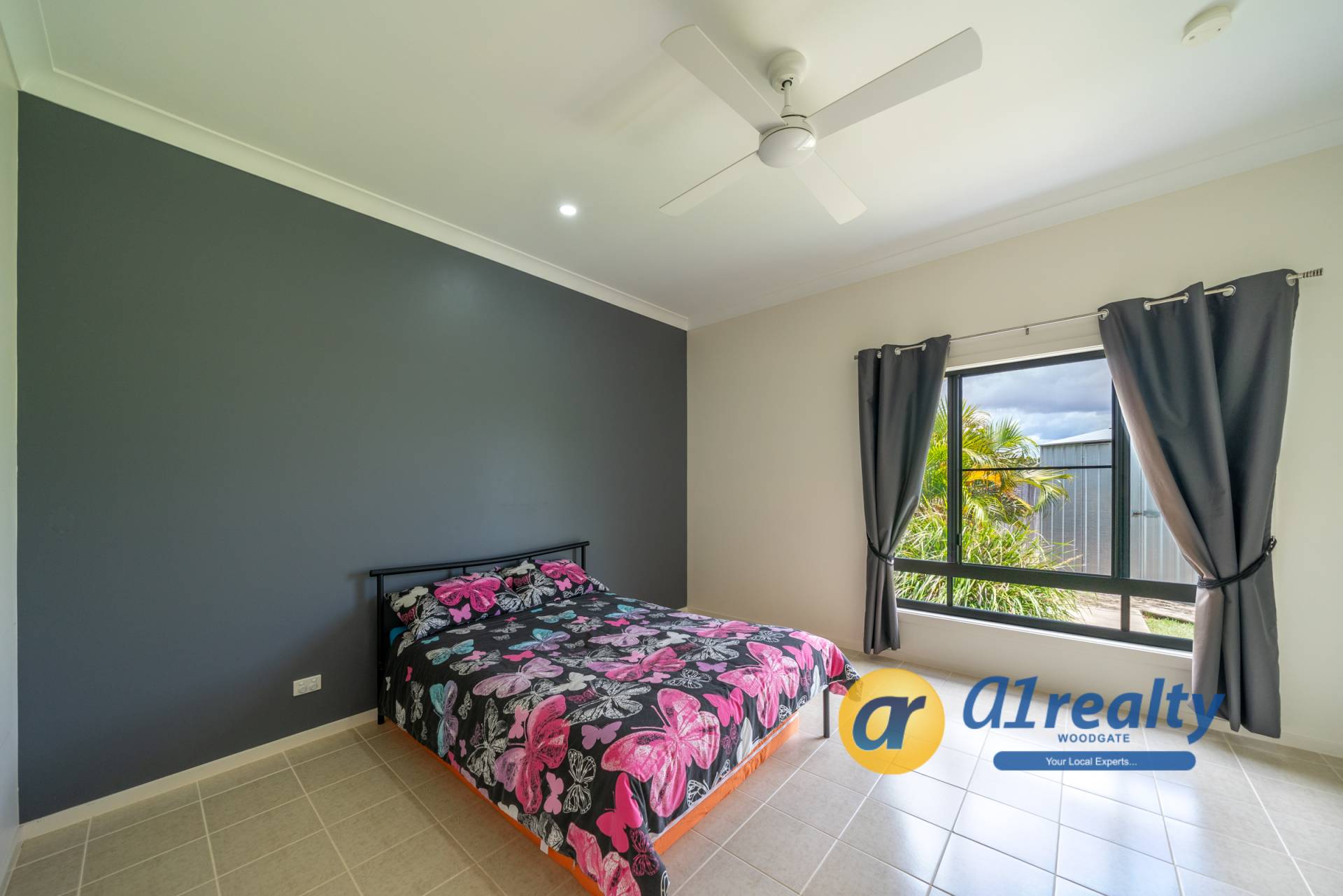 • Bedroom 2, Queen sized with walk in robe and ceiling fan.