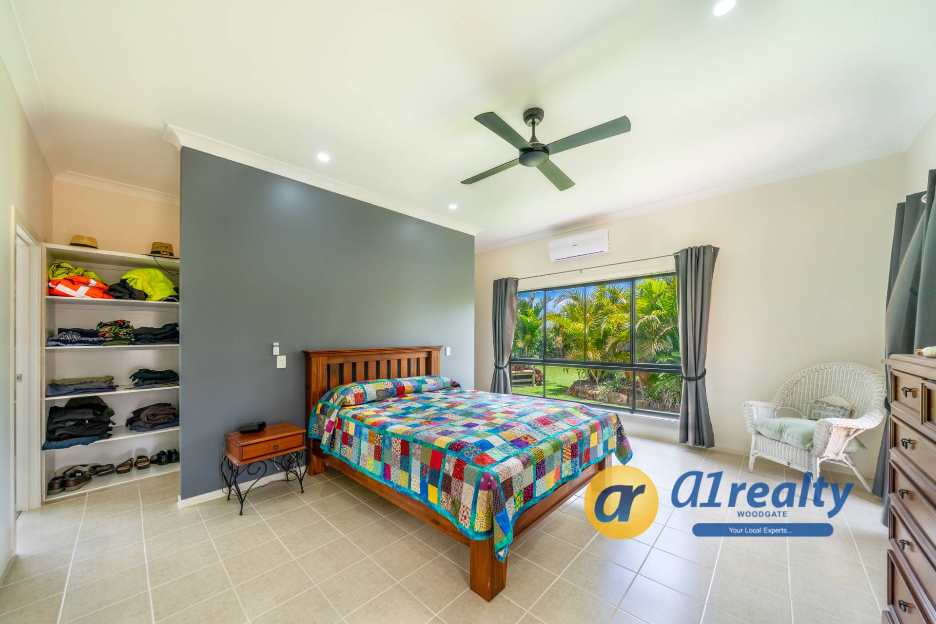 • Master Bedroom is also air-conditioned, lovely ensuite and walk-through his and her robe area (5m long)