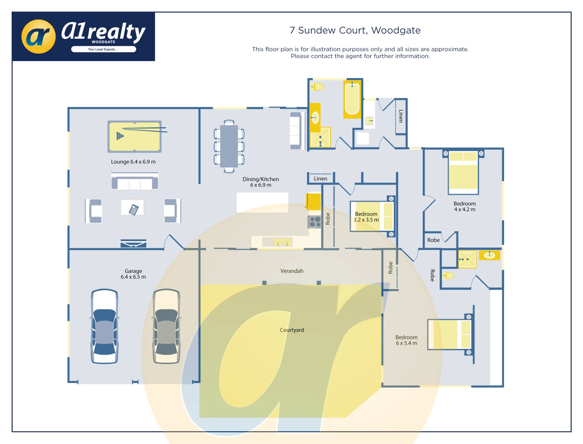 • Massive 6.4m x 6.9m lounge room area with 3.5kw air-con and fans.