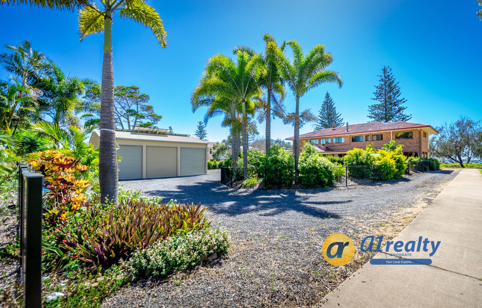 - Driveway is located on the side of the house and provides convenient access to your 3 bay shed with extra high clearance and workshop space (9m x 9m). Plenty of space to store your boat and caravans.