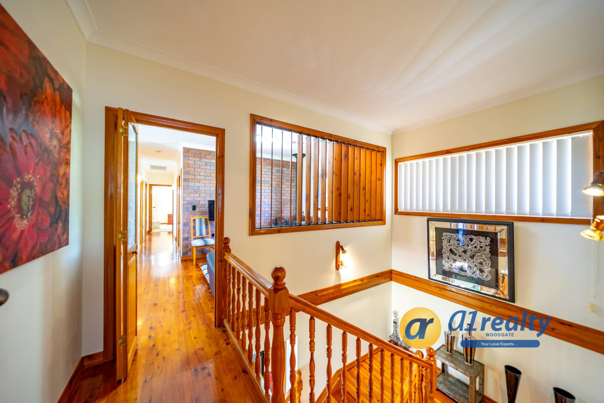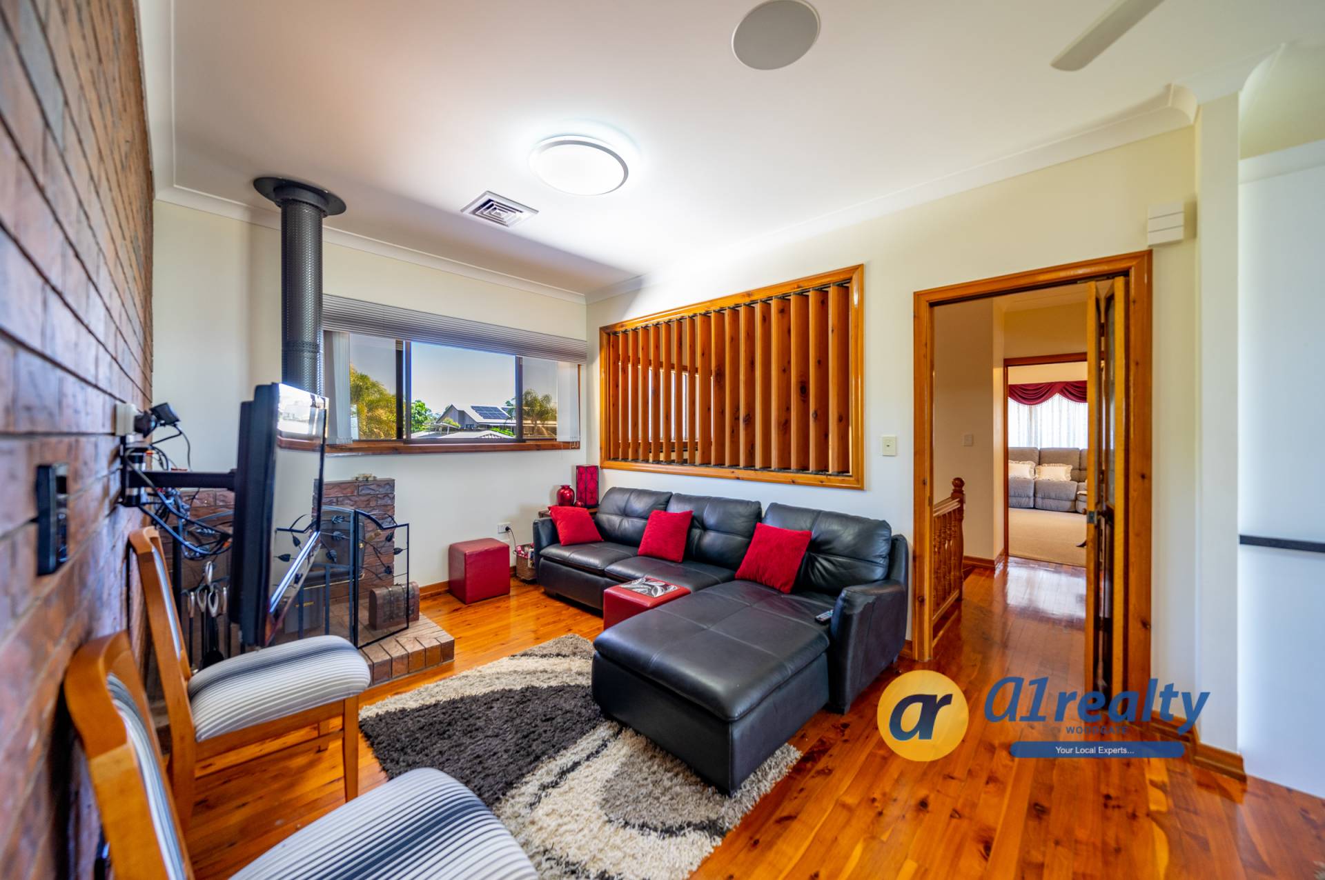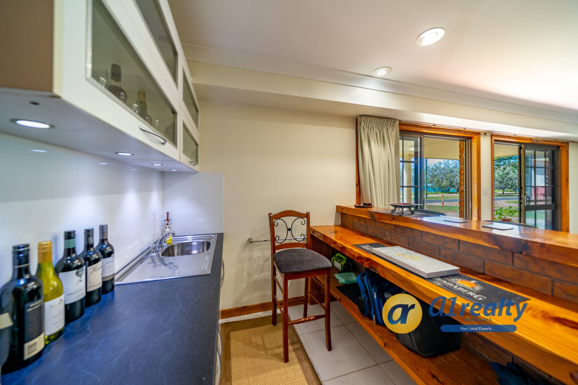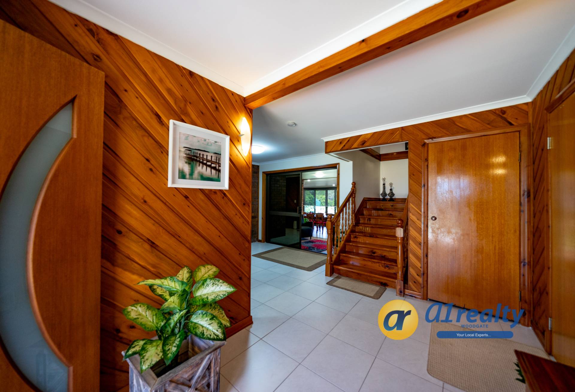 -Large double doors open onto a lovely tiled entry entrance and a stunning timber staircase. A fantastic entertainment area is located at the front of the house and with the brick bar as a feature, would make an ideal games area. Overlooking the rear gardens is a fully screened undercover entertainment area (approx 9.5m x 3.5m), with an inbuilt BBQ and kitchenette area.