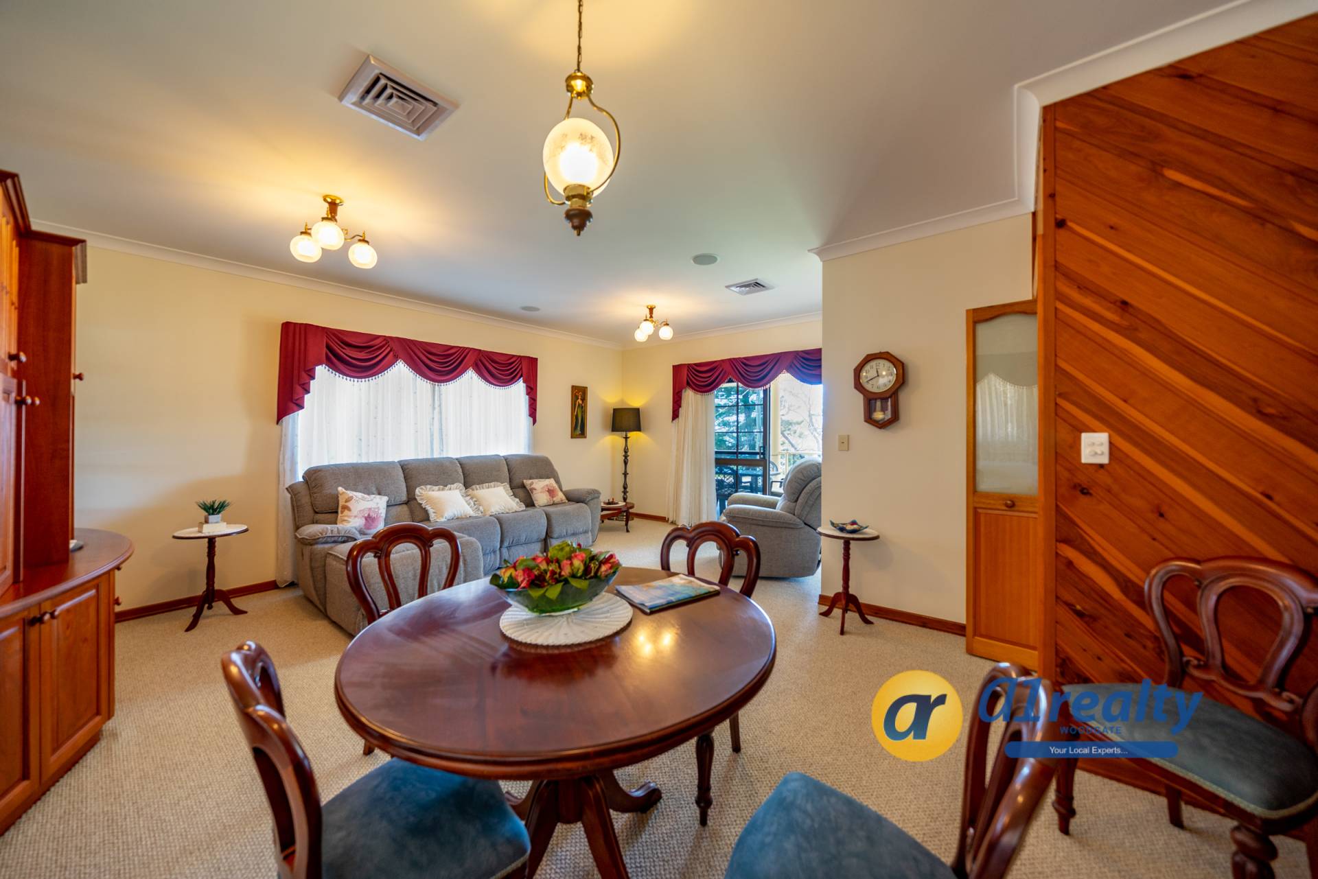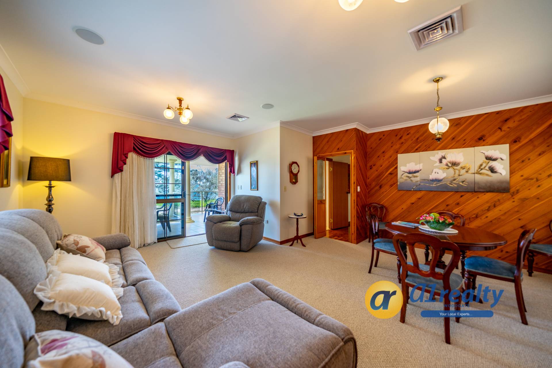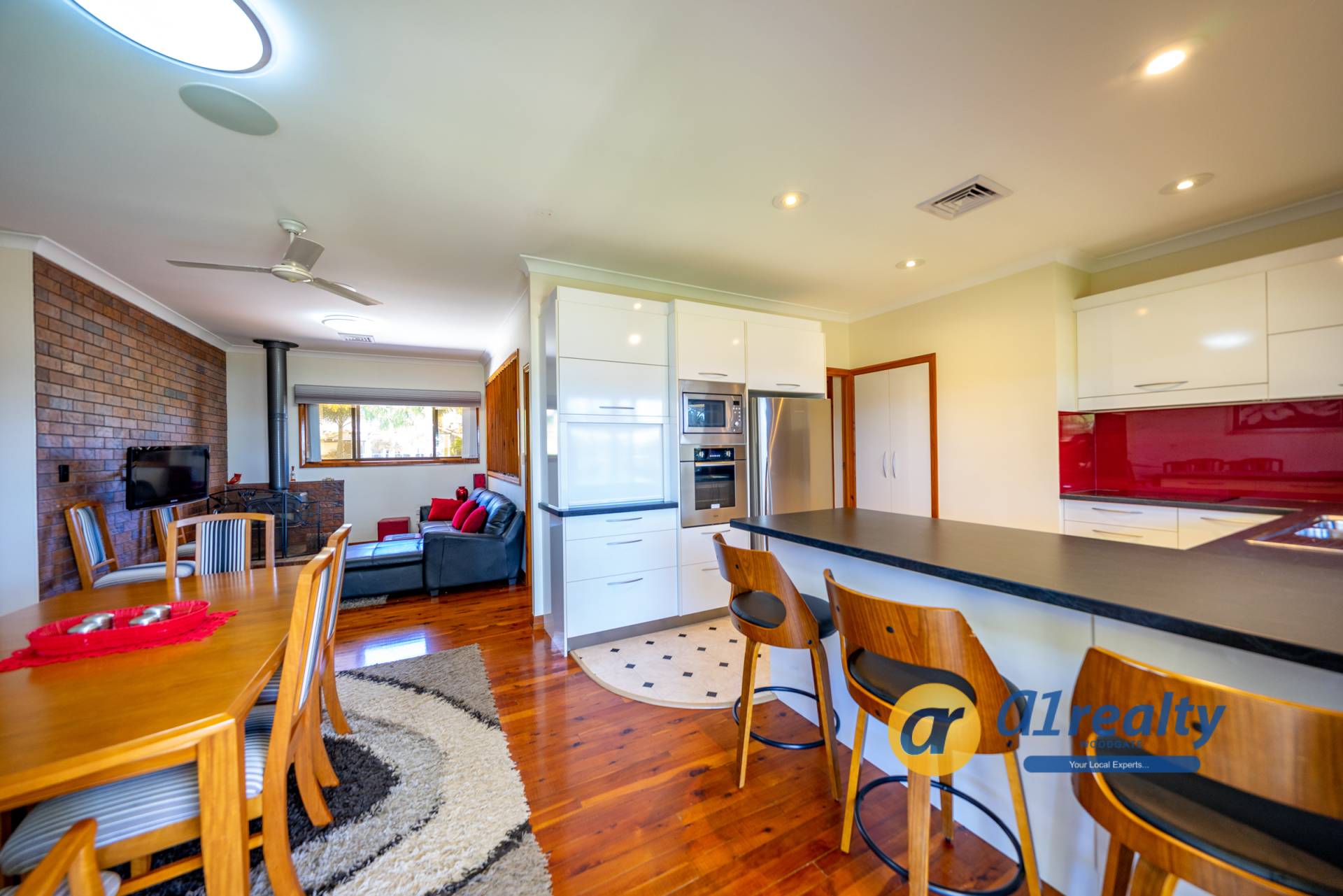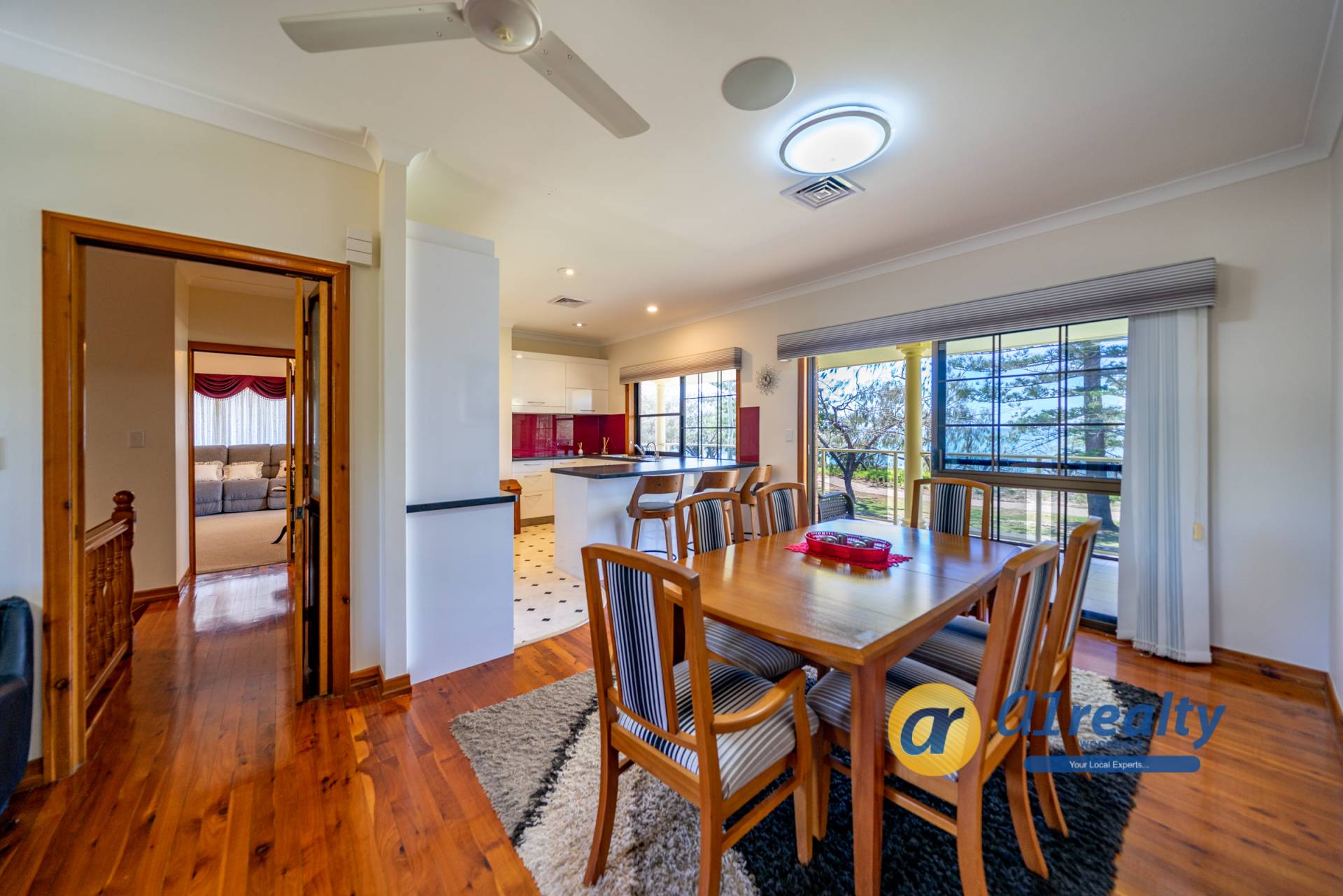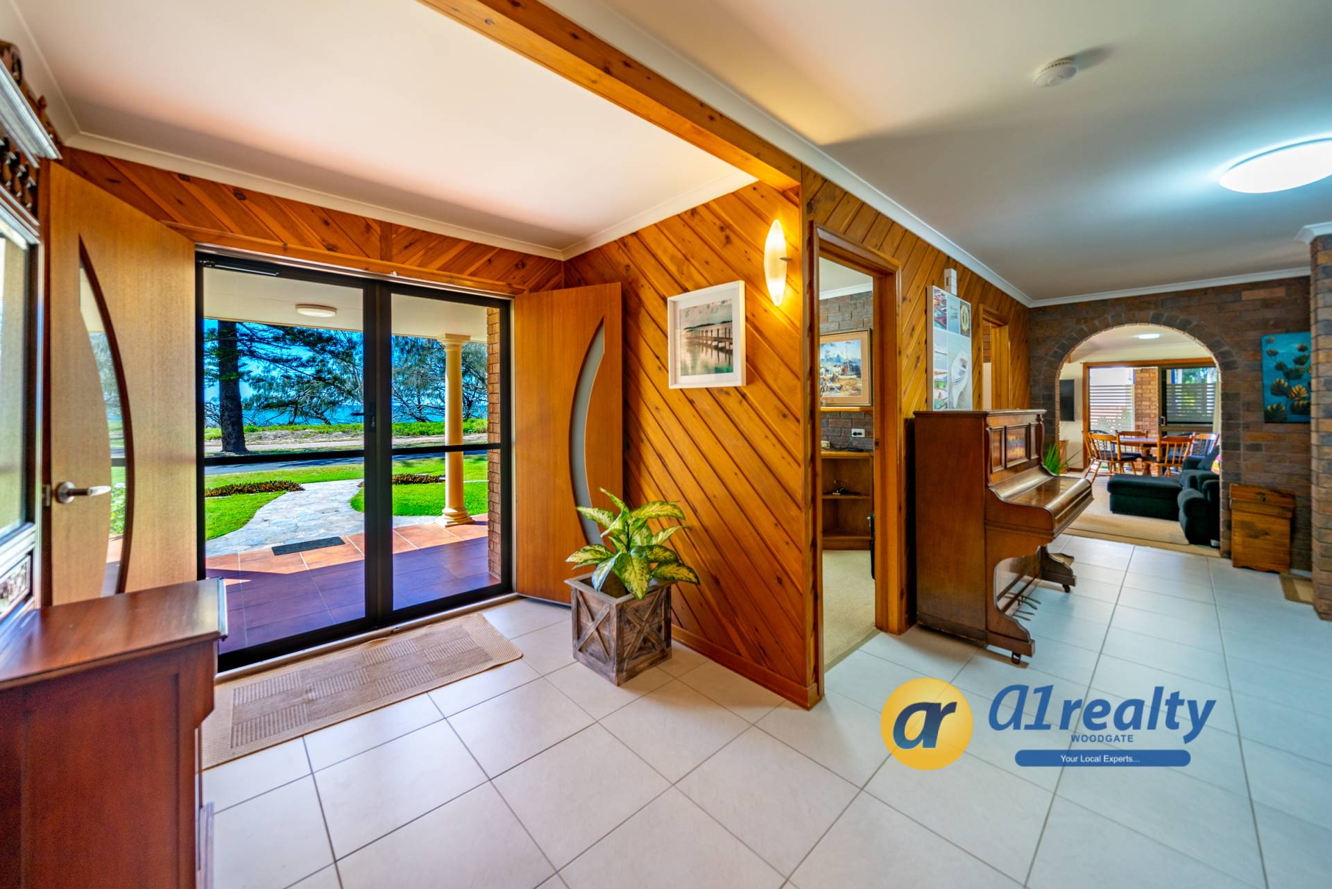 -Large double doors open onto a lovely tiled entry entrance and a stunning timber staircase. A fantastic entertainment area is located at the front of the house and with the brick bar as a feature, would make an ideal games area. Overlooking the rear gardens is a fully screened undercover entertainment area (approx 9.5m x 3.5m), with an inbuilt BBQ and kitchenette area.