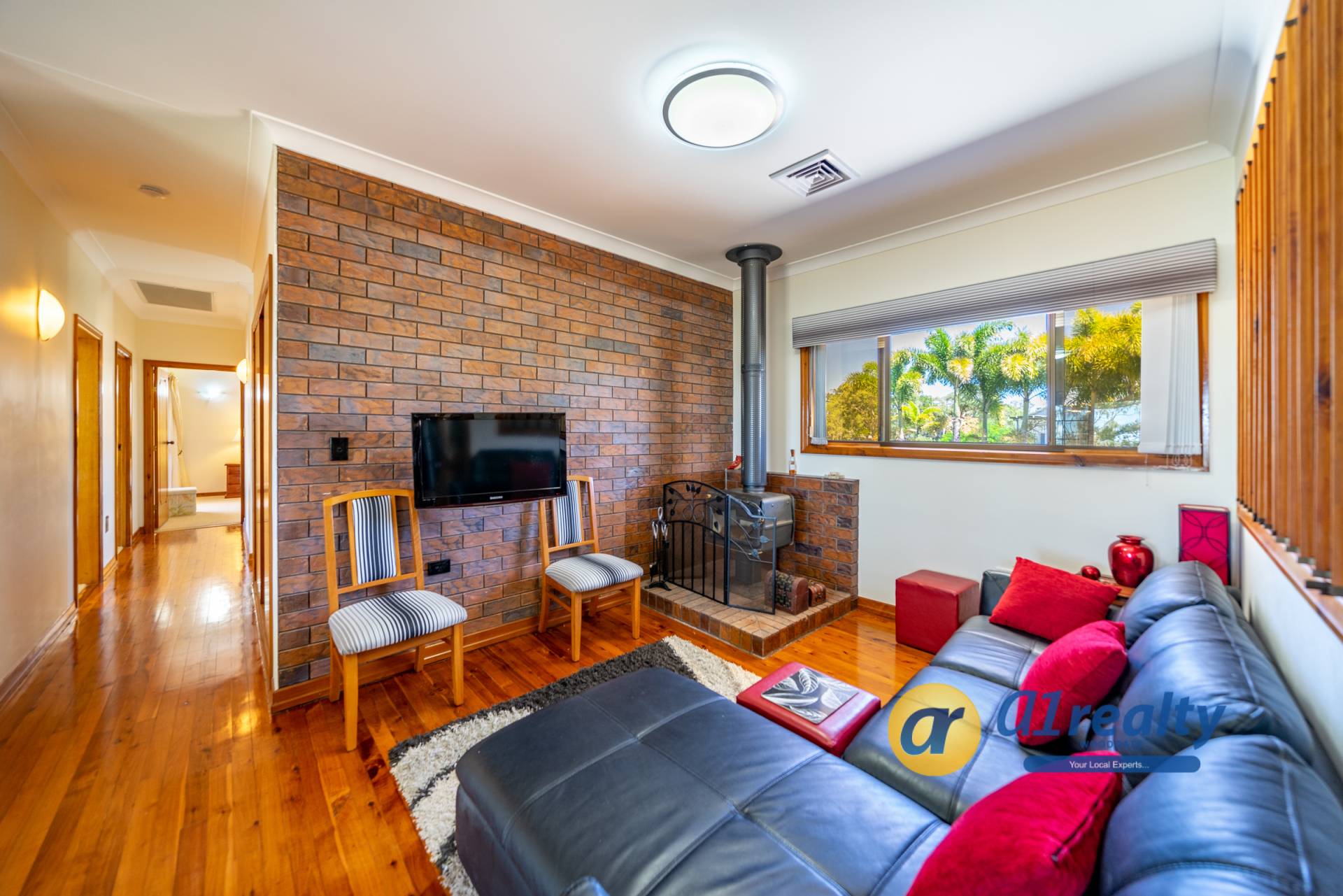 - Soaring 9ft ceilings with feature timber and brick walls. High gloss polished Cypress timber floors.